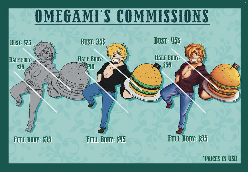 Howdy, I'm Omegami, or Omeg, and I am an American college student and hobbyist artist. I've been drawing all my life, but only started getting truly serious about it in November 2023. I focus on fanarts of many fandoms, with most of my work pertaining to One Piece.I hope to be able to open a small online shop in the future, but I am just happy being able to share my artist journey with everyone, as fanart is my passion.