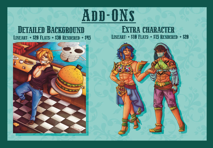 Please read the following information and the terms and conditions.Keep in mind that commission prices are in USD. Payments are typically made through my ko-fi page, however if that is not available for anyone, Paypal is also open- for any inquiries, feel free to email or DM me.
